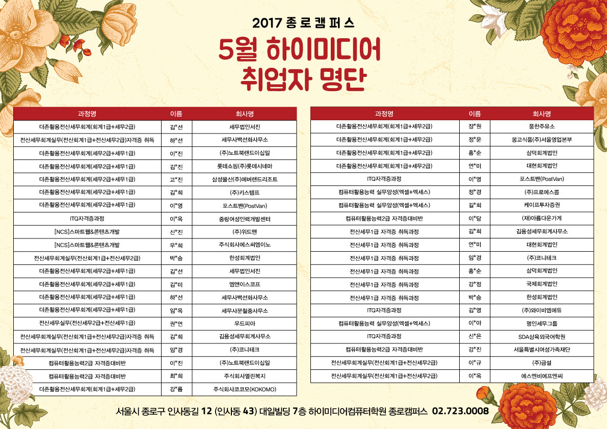 [종로]5월취업자명단
