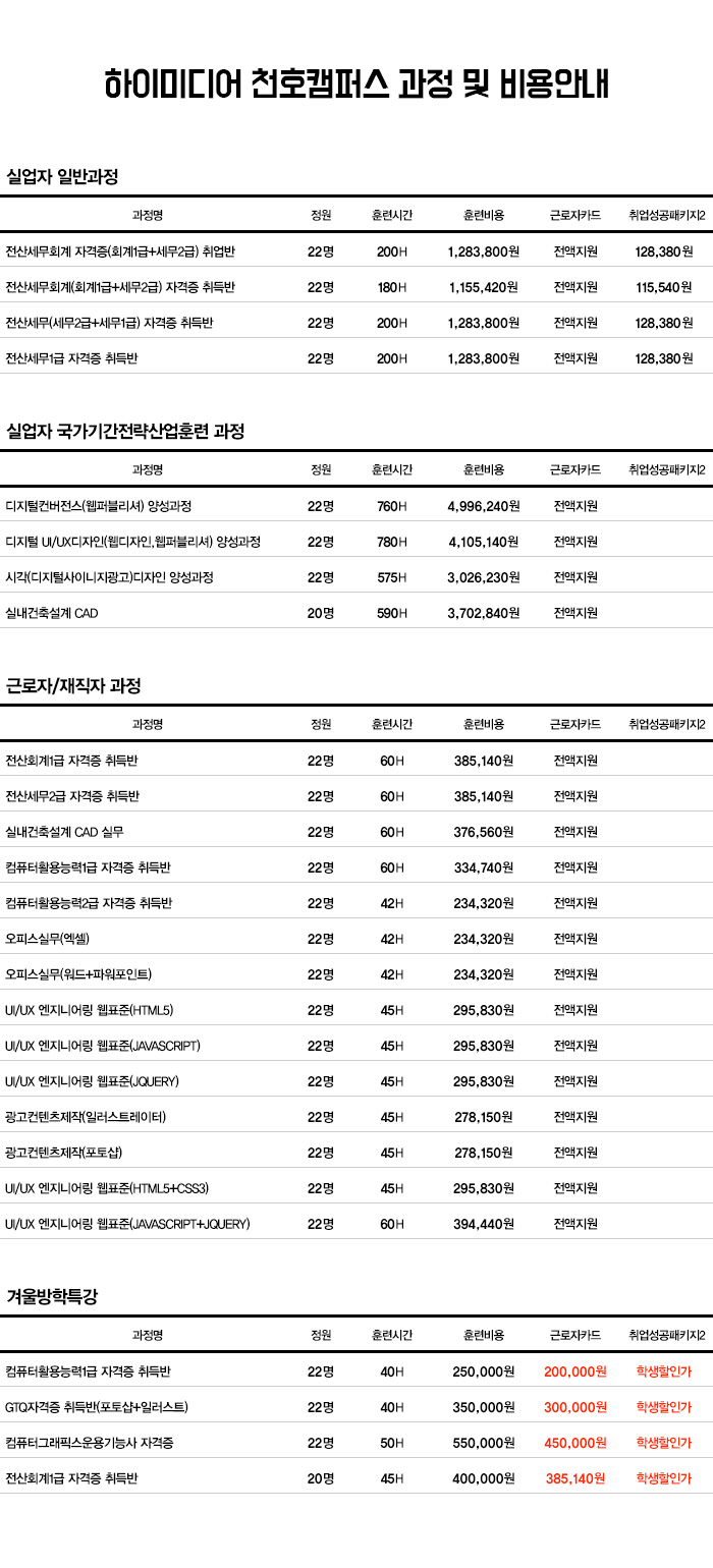 근로자카드 / 실업자 내일배움카드 90% ~ 100% 국비지원 됩니다.