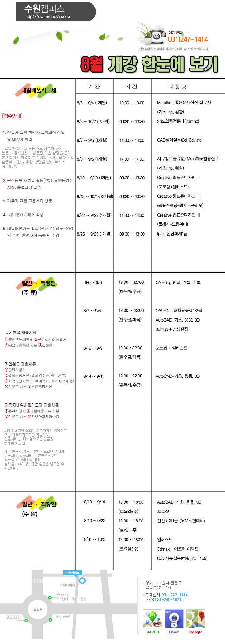 8월 개강 한눈에 보기